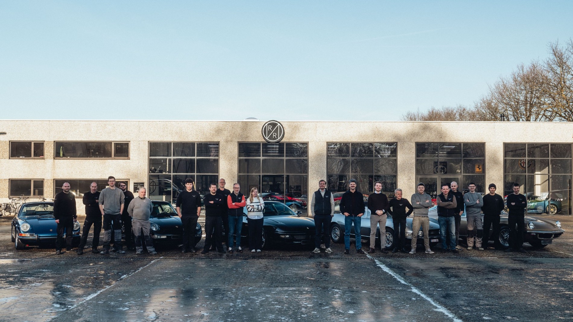 Rock N Roll Classics is located on Gistelsteenweg in Varsenare-Jabbeke. The former truck garage has been transformed, with large windows replacing the original high entrance doors to showcase the showroom.